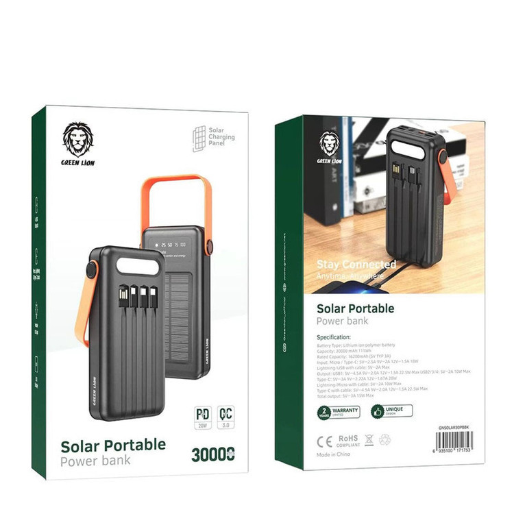 پاوربانک خورشیدی مد Green Lion مدل Solar ظرفیت 30000 میلی آمپرساعت